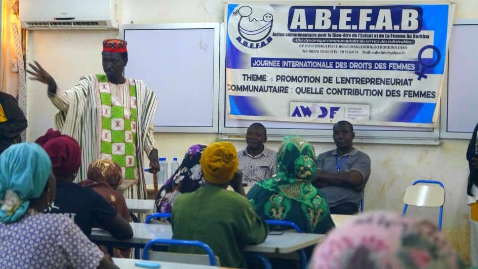 Cโest dans cette dynamique que lโABEFAB a bรฉnรฉficiรฉ du soutien deย African Womenโs Development Fundย (AWDF) pour promouvoir la paix et la sรฉcuritรฉ, avec un accent sur la prรฉvention des conflits et la consolidation de la paix dans la rรฉgion du Centre de Ouagadougou ร travers son projet intitulรฉย ยซ Projet de renforcement du leadership des femmes dans le processus de consolidation de la paix au Burkina Faso ยป.